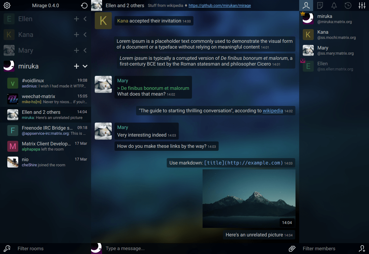 - Customizable keyboard shortcuts for (almost) everything, including filtering and switching rooms, scrolling, sending files...