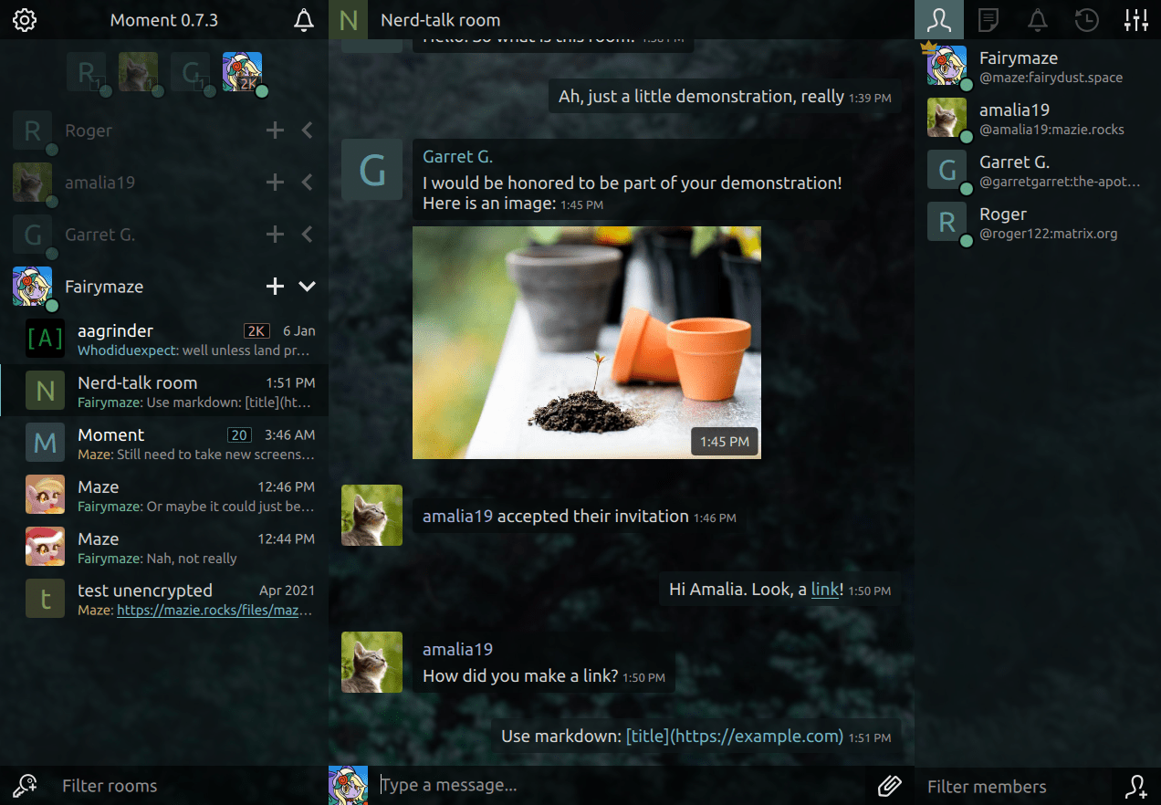 Latest release Built with matrix-nio #moment-client:matrix.org mx-moment.xyz